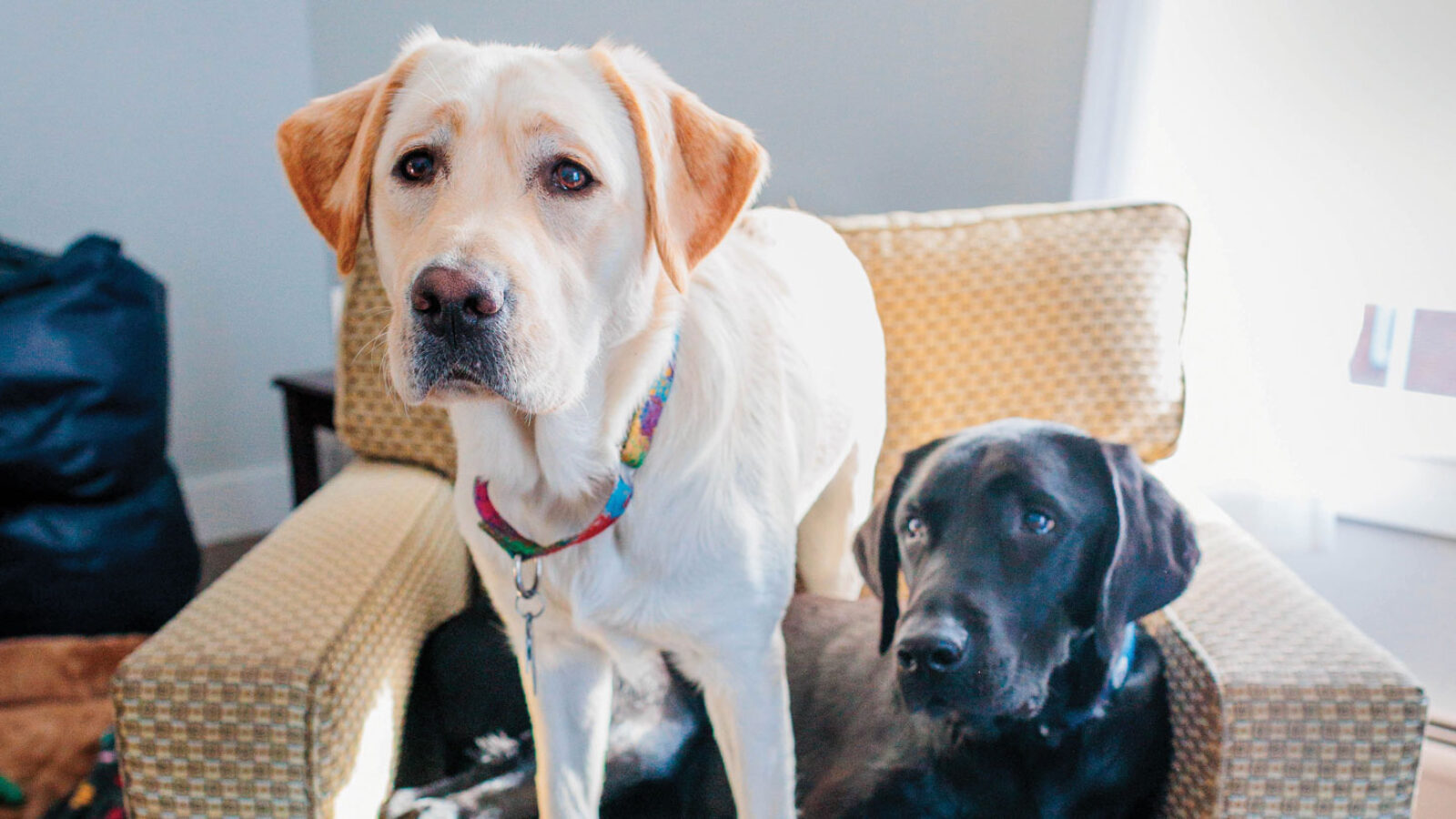 Henry, a 2-year-old black lab, and Scout, a 1-year-old yellow lab, are the two newest, fuzziest, and most energetic members of the Health & Wellness staff. The two did not arrive at the same time, but do have history with each other—making them an especially interesting tag-team duo.